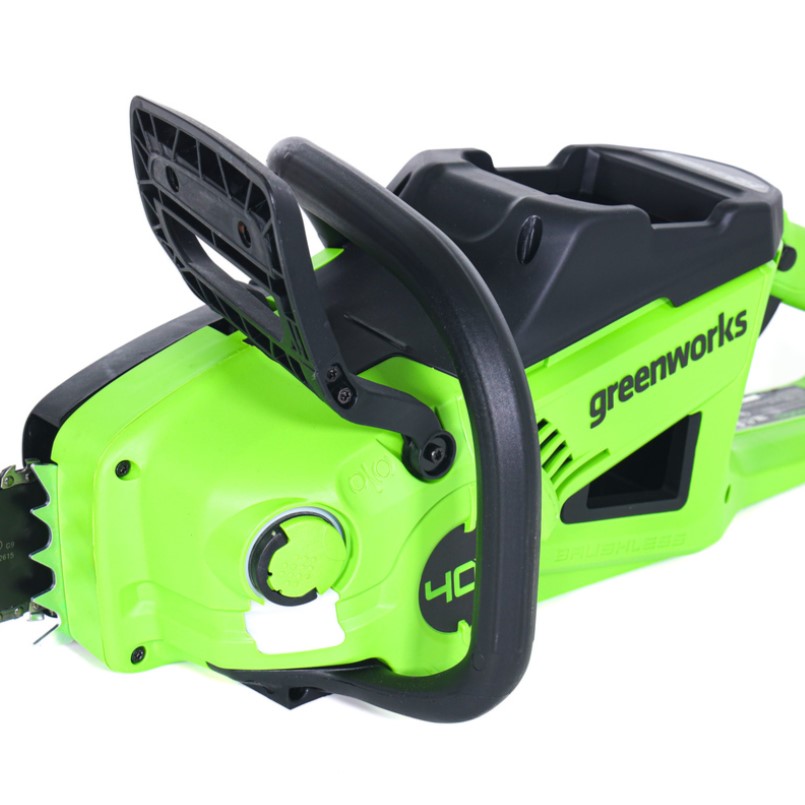 Пила цепная аккумуляторная GREENWORKS GD40CS20X 40В предназначена для садовых работ с деревом. Длина шины модели составляет 40 см, скорость цепи 21 м/с, что позволяет использовать пилу для ведения полноценного дачного хозяйства. Работа от электродвигателя обеспечивает более тихую работу и меньший уровень вибраций по сравнению с бензиновыми аналогами. Смазка цепи происходит автоматически. Для безопасной работы предусмотрены предохранитель от случайного включения и механический тормоз цепи. Защита двигателя от перегрузки обеспечивает надежность и продлевает срок службы инструмента.