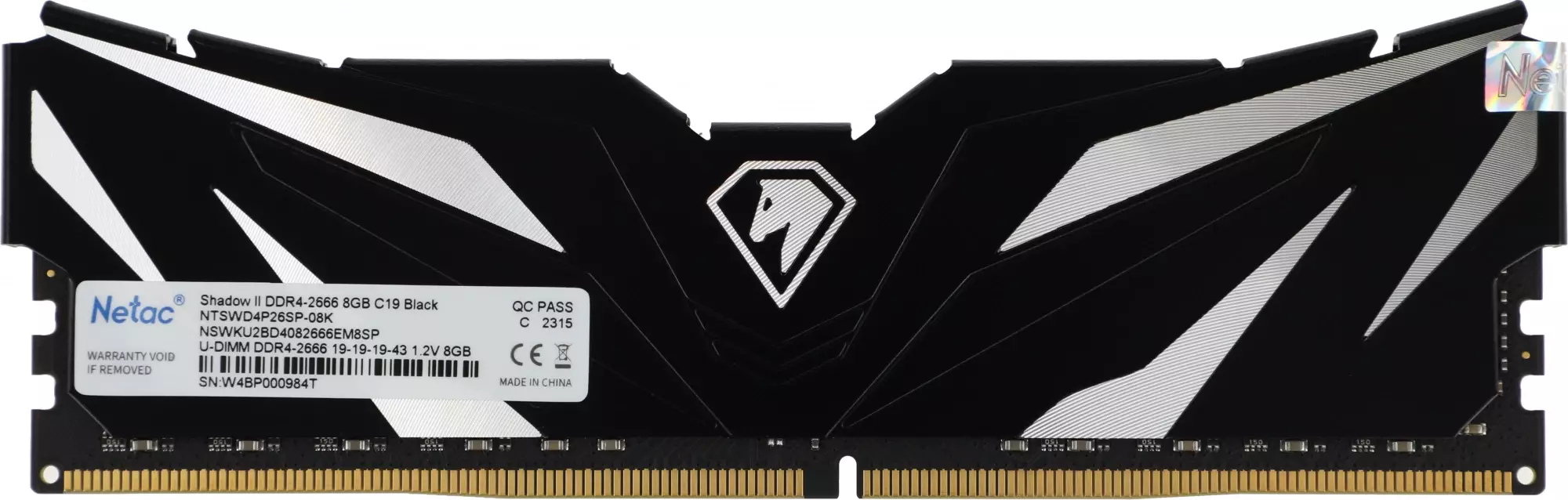 Оперативная память Netac Shadow II DDR4 - 8GB, 2666 МГц, DIMM, CL19 (ntswd4p26sp-08k)