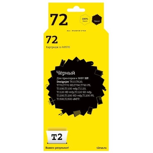Картридж T2 C9370A (IC-H9370) №72 черный для HP Designjet T610/T620/T770/T790/T1100/T1200/T1300/T2300 600 стр.
