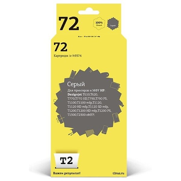 Картридж T2 C9374A (IC-H9374) №72 для HP Designjet T610/T620/T770/T790/T1100/T1200/T1300/T2300, серый, 600 стр.