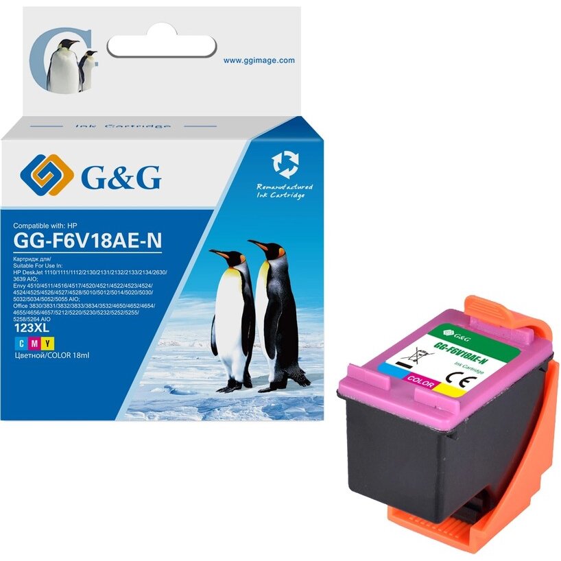 Картридж струйный G&G GG-F6V18AE-N 123XL голубой/пурпурный/желтый (18мл) для HP DJ 1210/1212/1212/2130/2131/2132/2133/2134/2630/3639 AIO;Envy 4510/451