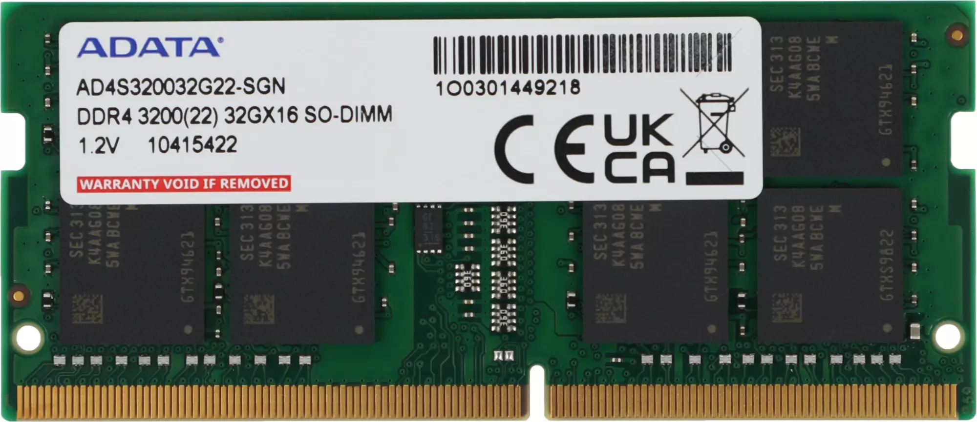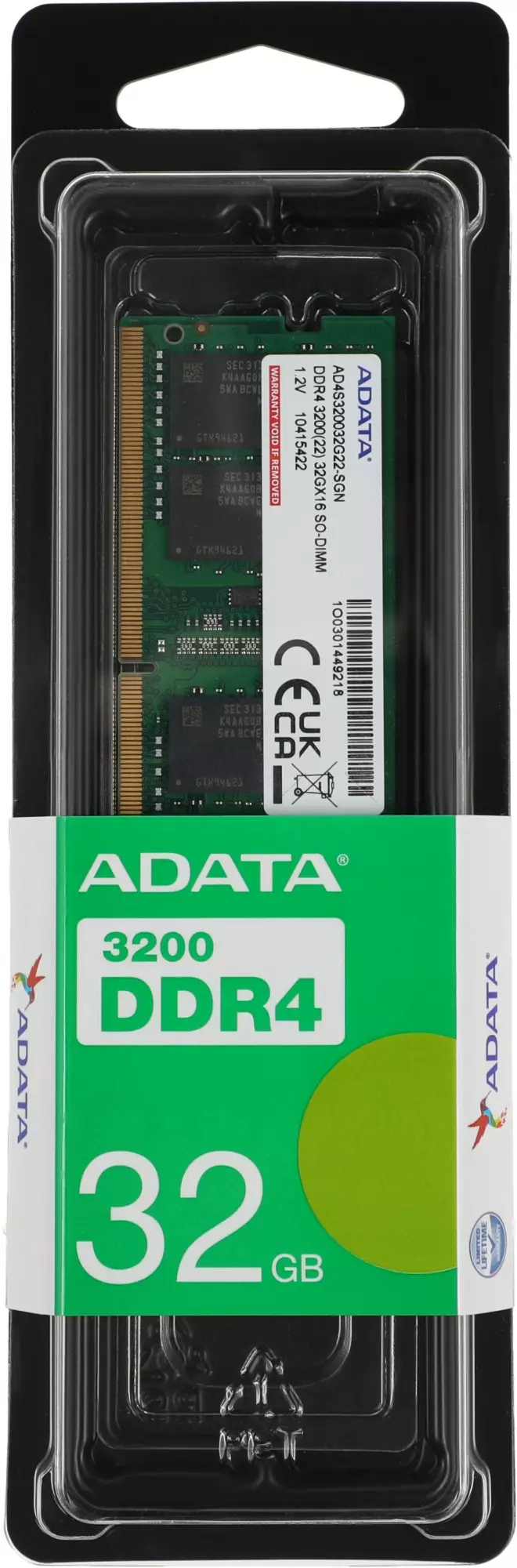 Оперативная память A-Data DDR4 - 32GB, 3200 МГц, SO-DIMM, CL22 (ad4s320032g22-sgn)