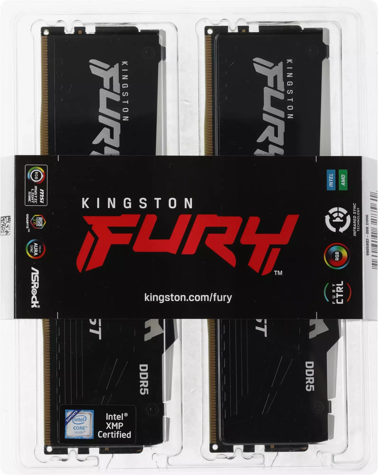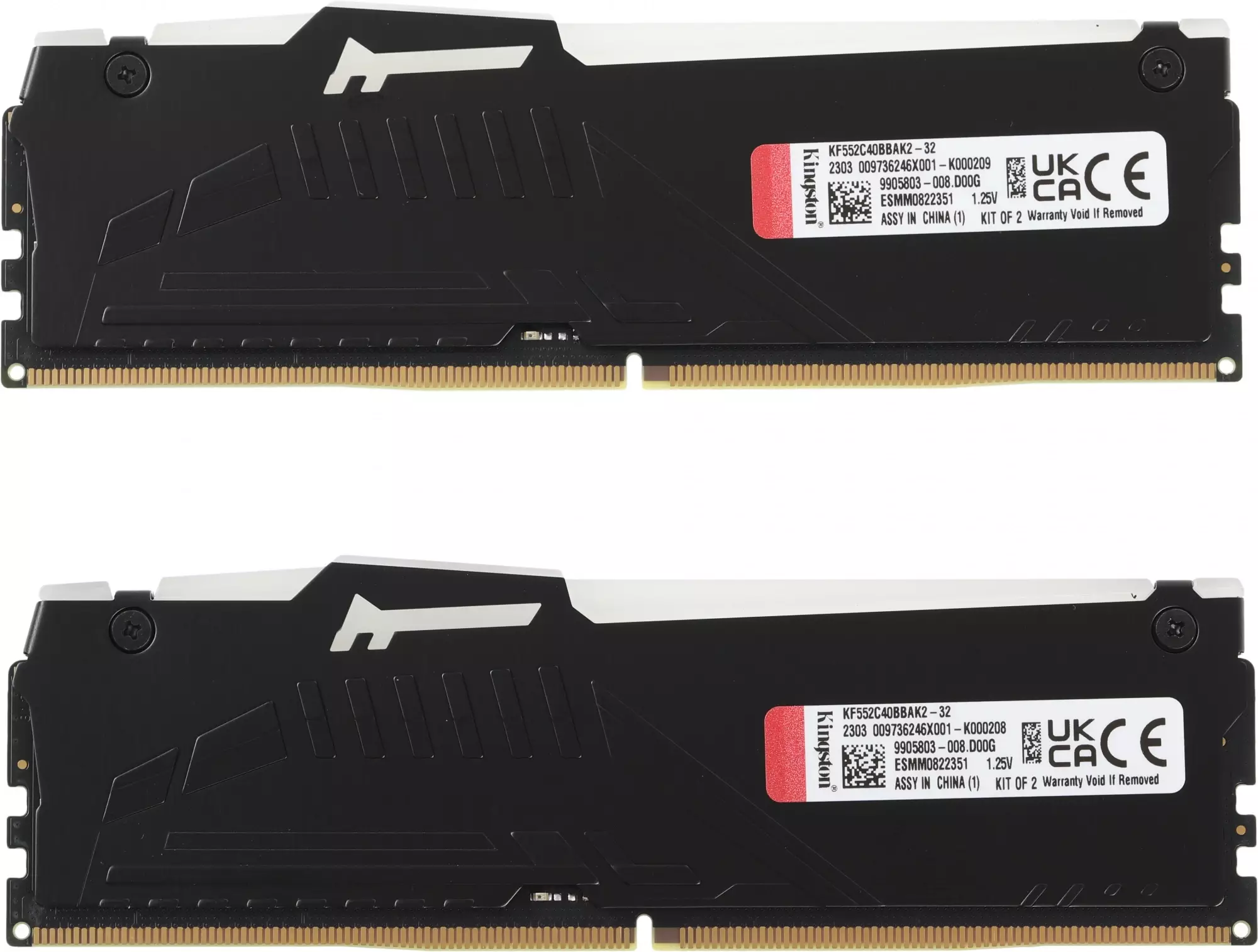 Оперативная память Kingston Fury Beast RGB DDR5 - 2x 16Gb, 5200 МГц, DIMM, CL40 (kf552c40bbak2-32)