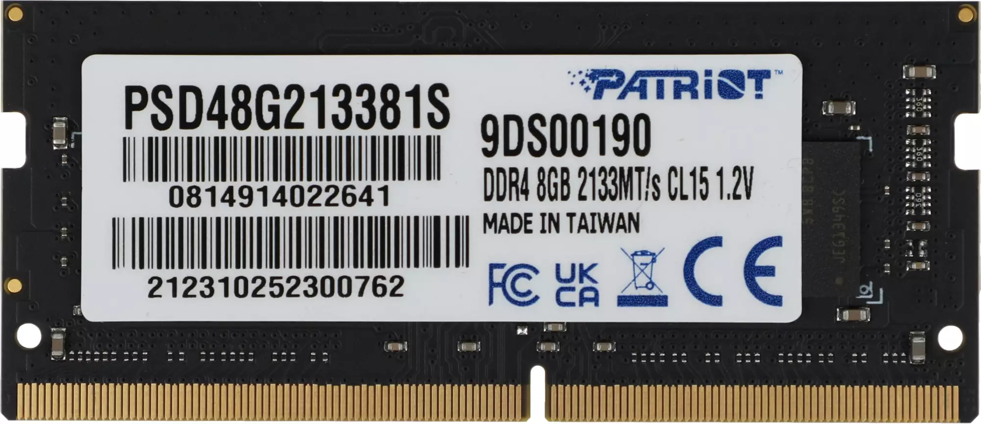 Оперативная память Patriot Signature DDR4 - 8GB, 2133 МГц, SO-DIMM, CL15, RTL (psd48g213381s)
