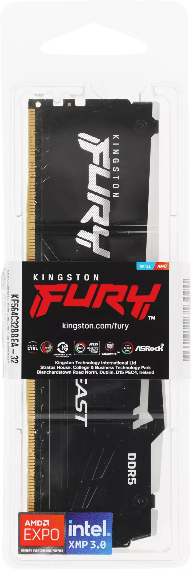 Оперативная память Kingston Fury Beast DDR5 - 32GB, 6400 МГц, DIMM, CL32, RTL (kf564c32bbea-32)