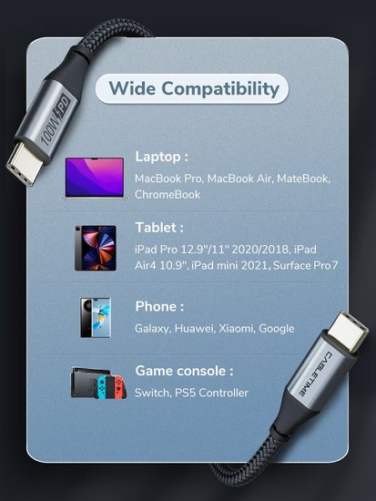 100W 2.0 USB Type-C - USB Type-C (1 м, черный)