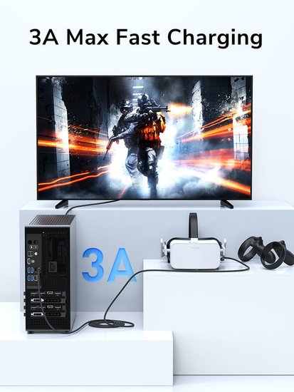 для Oculus Quest 2 VR Alternative USB Type-A - USB Type-C (3 м, черный)