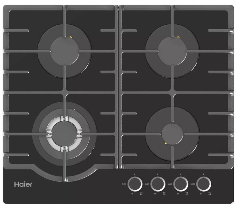 Выбор газовой варочной панели чаще всего обусловлен тем, что в частный дом или квартиру проведен именно газ в качестве обогрева. Работать с этой моделью довольно просто, так как мощность нагрева видна невооруженным взглядом — по силе огня в горелке. Количество конфорок в этой модели: 4. Горелки с двойной короной позволяют увеличивать мощность нагрева в зависимости от диаметра посуды.