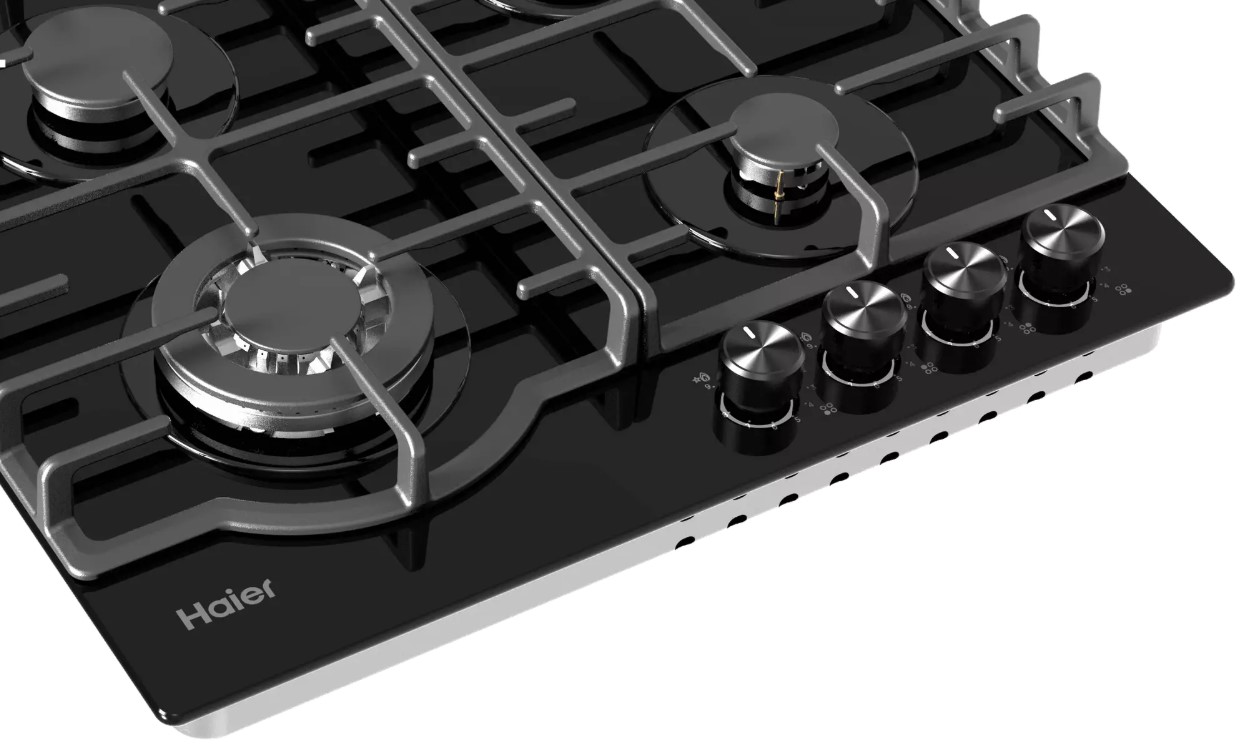 Выбор газовой варочной панели чаще всего обусловлен тем, что в частный дом или квартиру проведен именно газ в качестве обогрева. Работать с этой моделью довольно просто, так как мощность нагрева видна невооруженным взглядом — по силе огня в горелке. Количество конфорок в этой модели: 4. Горелки с двойной короной позволяют увеличивать мощность нагрева в зависимости от диаметра посуды.