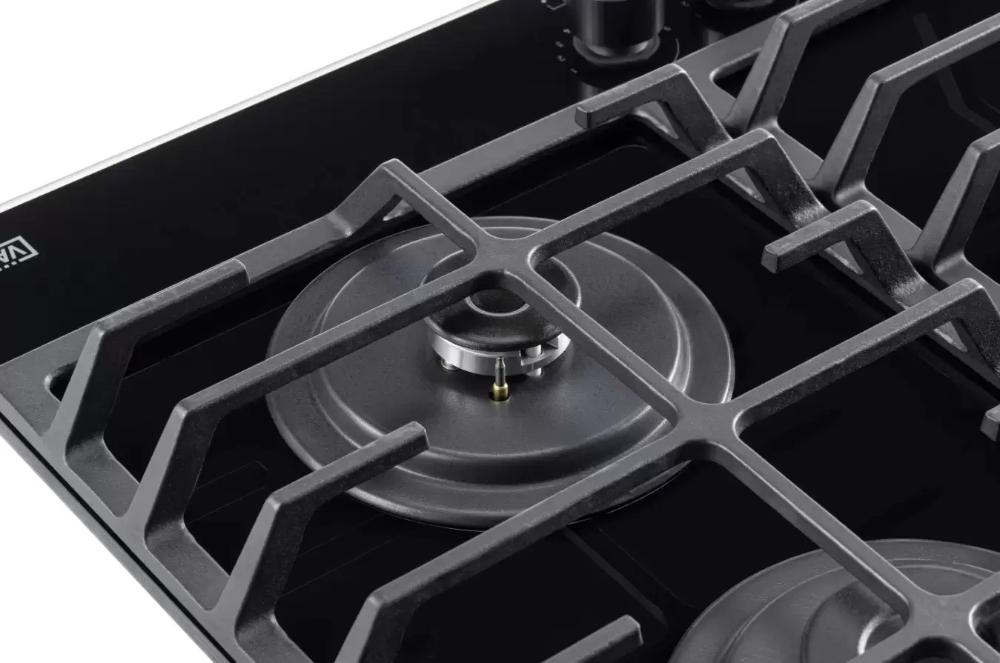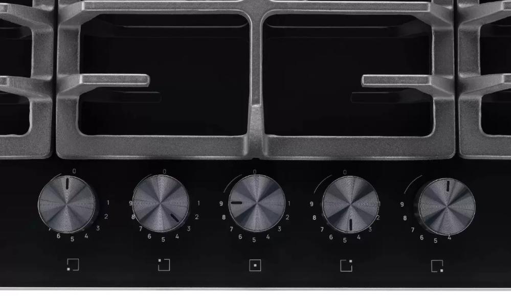 Выбор газовой варочной панели чаще всего обусловлен тем, что в частный дом или квартиру проведен именно газ в качестве обогрева. Работать с этой моделью довольно просто, так как мощность нагрева видна невооруженным взглядом — по силе огня в горелке. Количество конфорок в этой модели: 5.