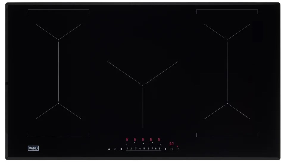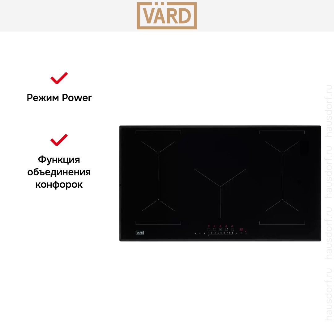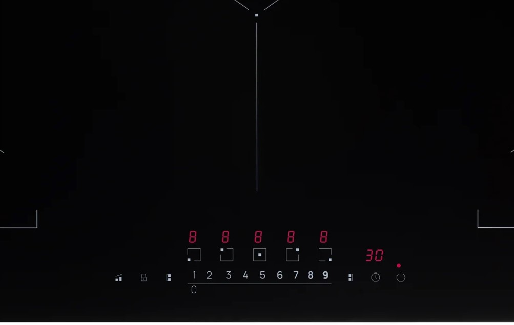 Варочная панель работает на индукционном нагреве — это значит, что повышается температура непосредственно посуды, в которой готовится блюдо. Таким образом промежуточная ступень с предварительным нагревом конфорки пропускается — сокращается время, повышается безопасность. Количество конфорок в этой модели: 5.