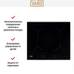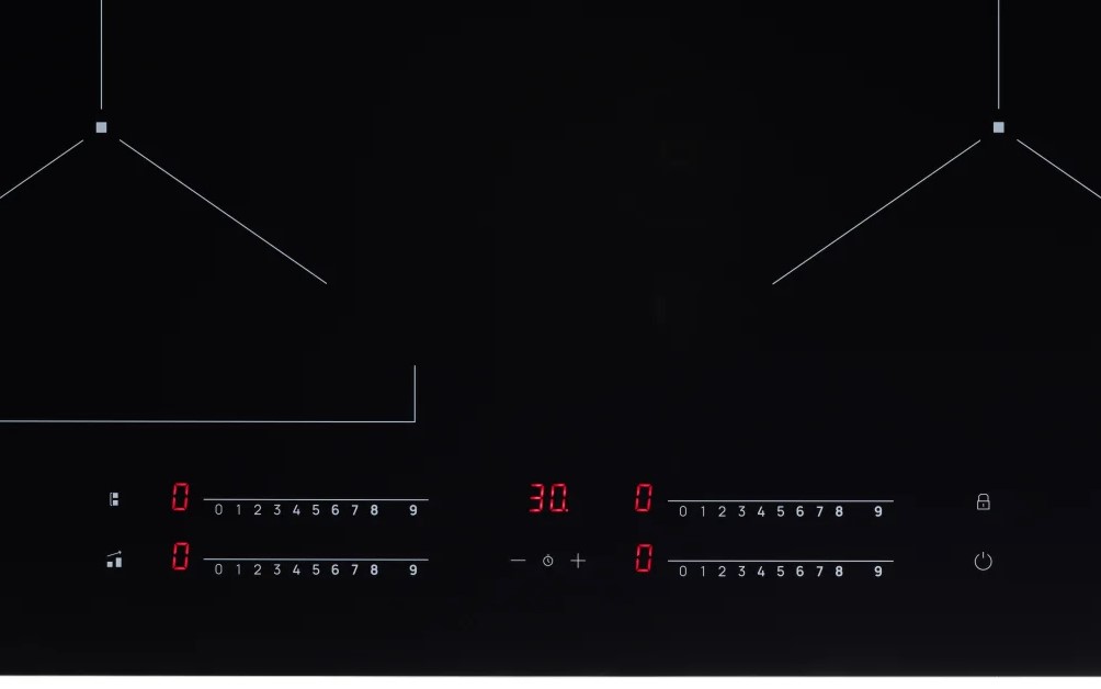 Варочная панель работает на индукционном нагреве — это значит, что повышается температура непосредственно посуды, в которой готовится блюдо. Таким образом промежуточная ступень с предварительным нагревом конфорки пропускается — сокращается время, повышается безопасность. Количество конфорок в этой модели: 4.