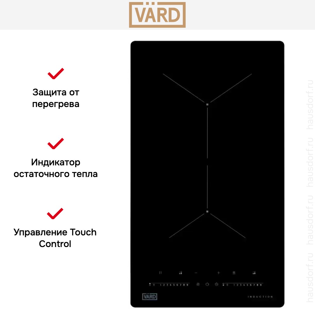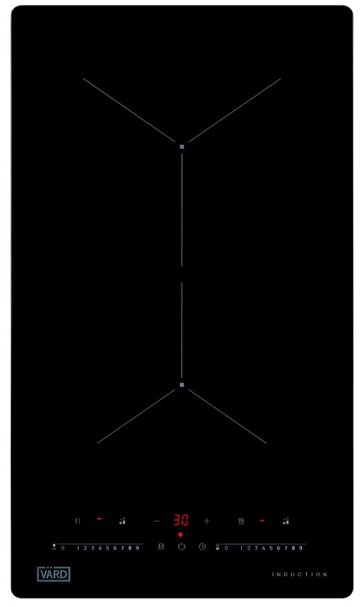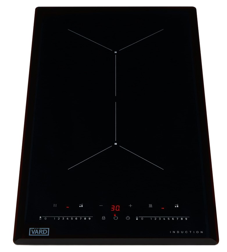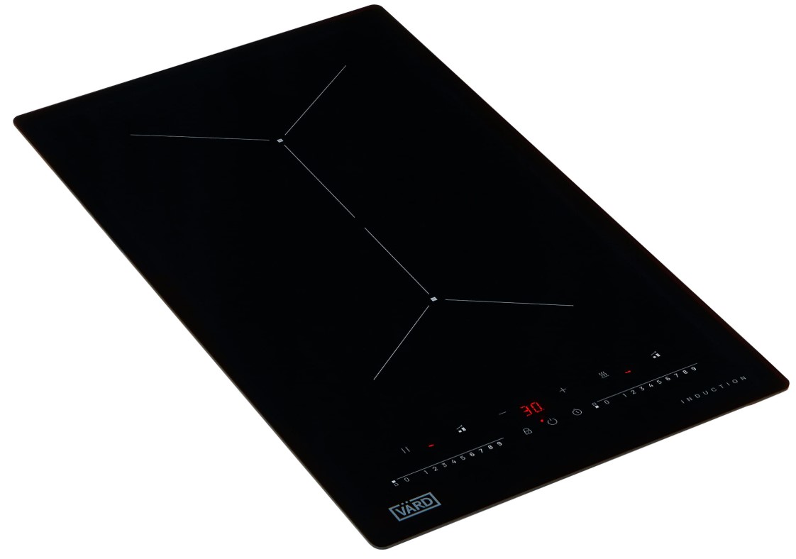 Варочная панель работает на индукционном нагреве — это значит, что повышается температура непосредственно посуды, в которой готовится блюдо. Таким образом промежуточная ступень с предварительным нагревом конфорки пропускается — сокращается время, повышается безопасность. Количество конфорок в этой модели: 2.