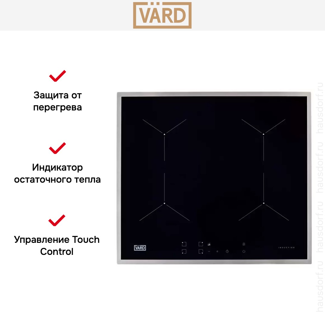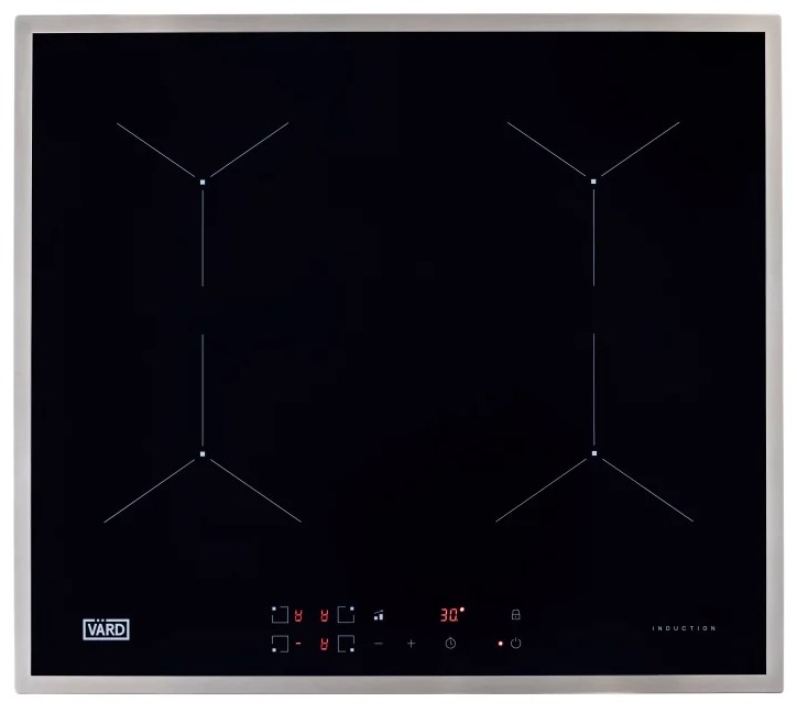 Варочная панель работает на индукционном нагреве — это значит, что повышается температура непосредственно посуды, в которой готовится блюдо. Таким образом промежуточная ступень с предварительным нагревом конфорки пропускается — сокращается время, повышается безопасность. Количество конфорок в этой модели: 4.