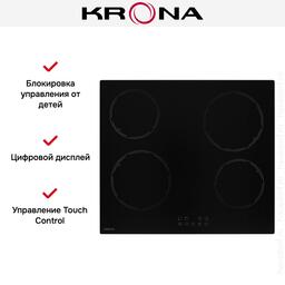 Цвет — черный. Материал самой поверхности: стеклокерамика. Управление этой моделью электронное. Для переключения уровней нагрева, выбора функций используются следующие переключатели: сенсорные/TouchControl. Продвинутая система контроля за прибором делают его современным и отвечающим на главные запросы покупателя.