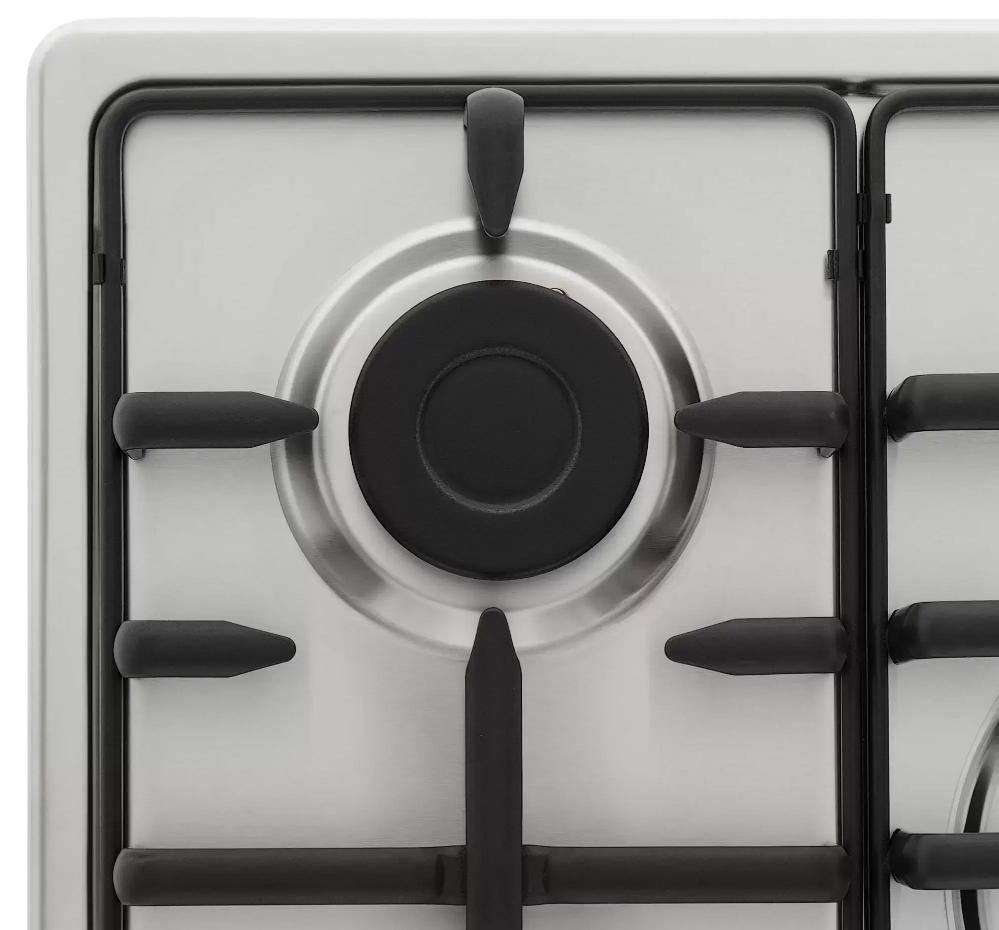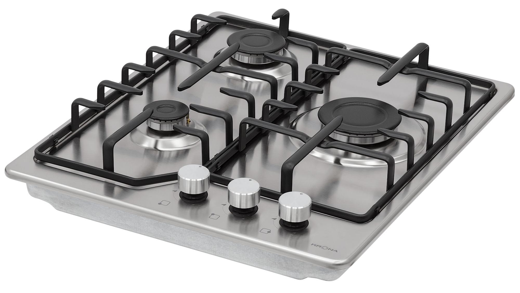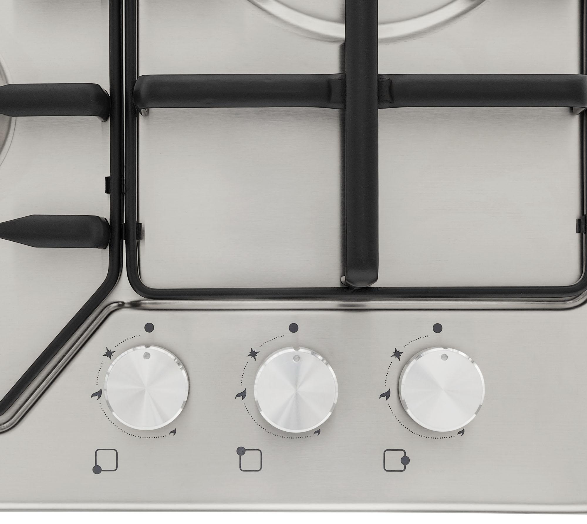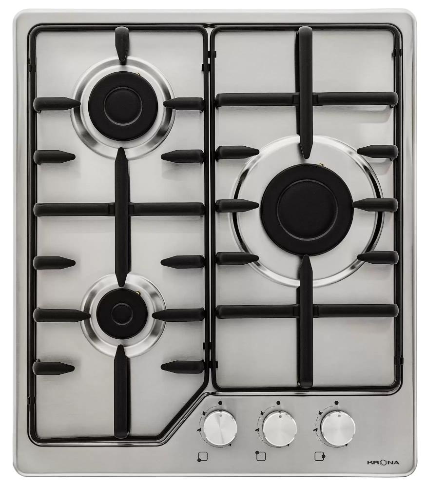 Выбор газовой варочной панели чаще всего обусловлен тем, что в частный дом или квартиру проведен именно газ в качестве обогрева. Работать с этой моделью довольно просто, так как мощность нагрева видна невооруженным взглядом — по силе огня в горелке. Количество конфорок в этой модели: 3.