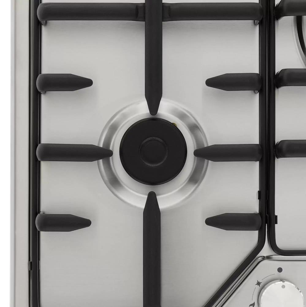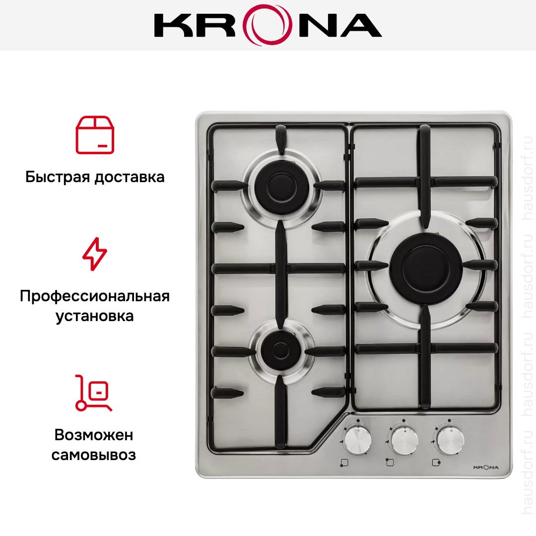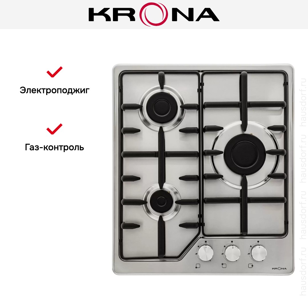 Выбор газовой варочной панели чаще всего обусловлен тем, что в частный дом или квартиру проведен именно газ в качестве обогрева. Работать с этой моделью довольно просто, так как мощность нагрева видна невооруженным взглядом — по силе огня в горелке. Количество конфорок в этой модели: 3.