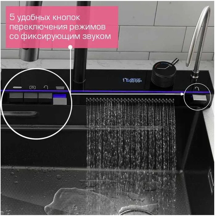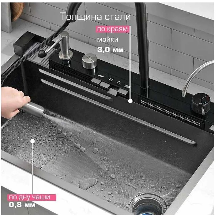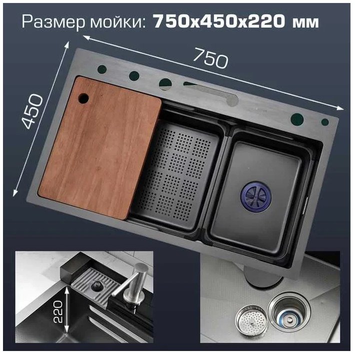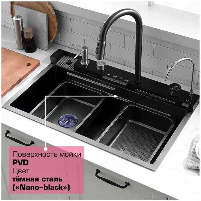 Поверхность мойки: PVD. Цвет: тёмная сталь («Nano-black»)