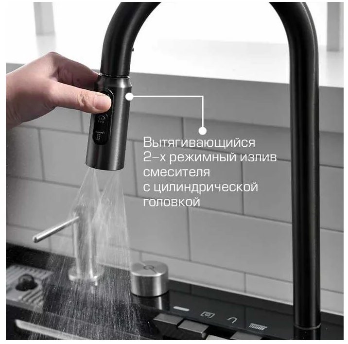 Вытягивающийся 2-х режимный излив смесителя с цилиндрической головкой