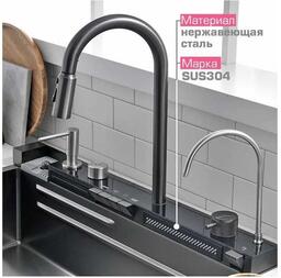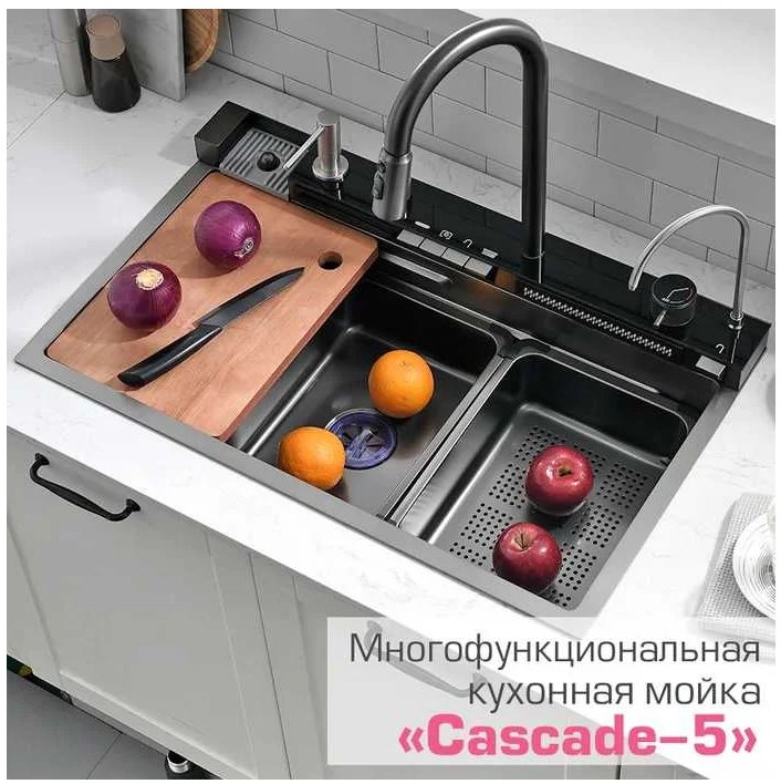 Кухонная мойка Esbano CASCADE-5 75x45 темная сталь