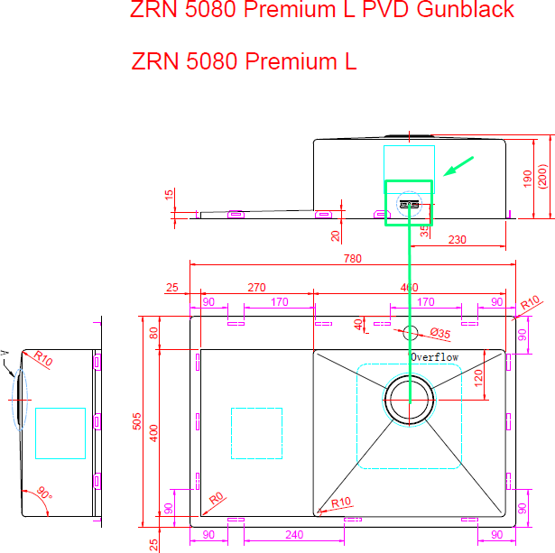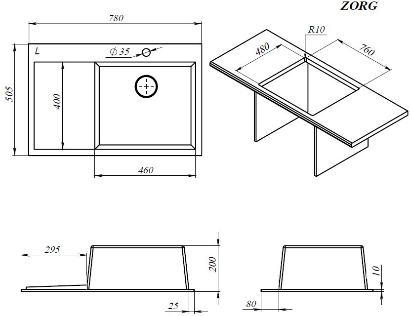 мойка кухонная zorg zrn 5080 premium r pvd gunblack оружейная сталь