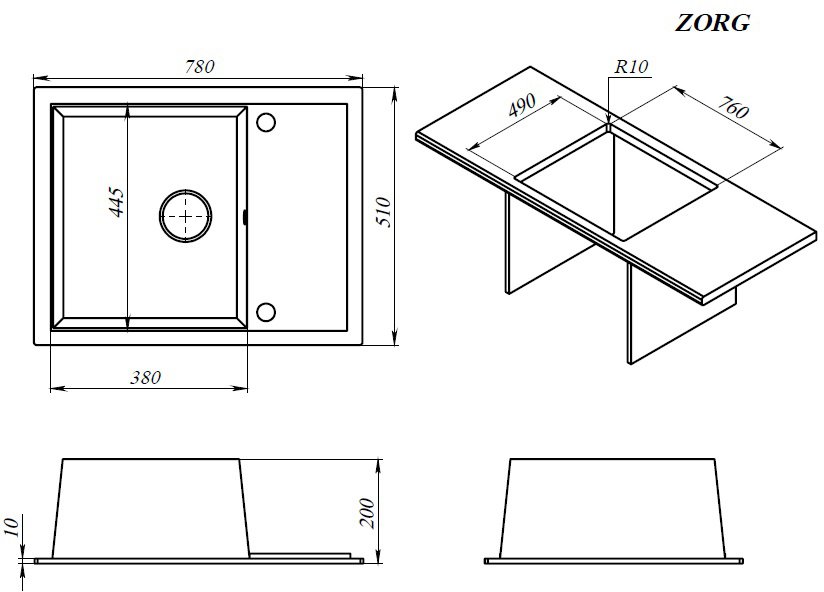 мойка кухонная с сифоном zorg rock 78 premium black metallic черный металлик