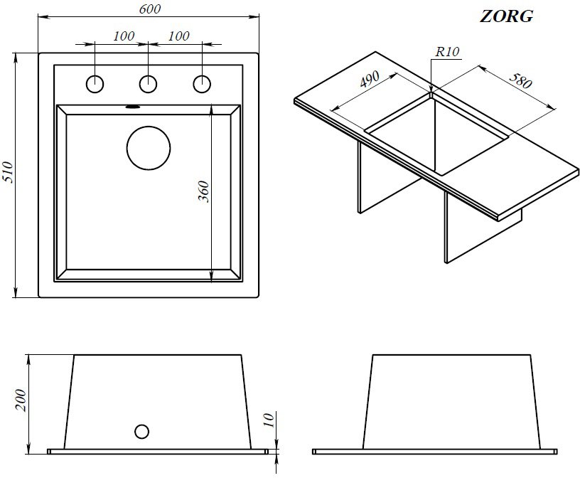 мойка кухонная с сифоном zorg rock 60 premium alba белый