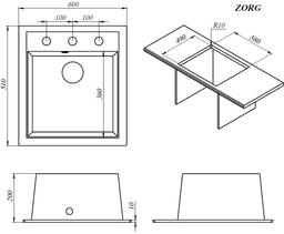Мойка кухонная с сифоном ZORG Rock 60 PREMIUM alba белый