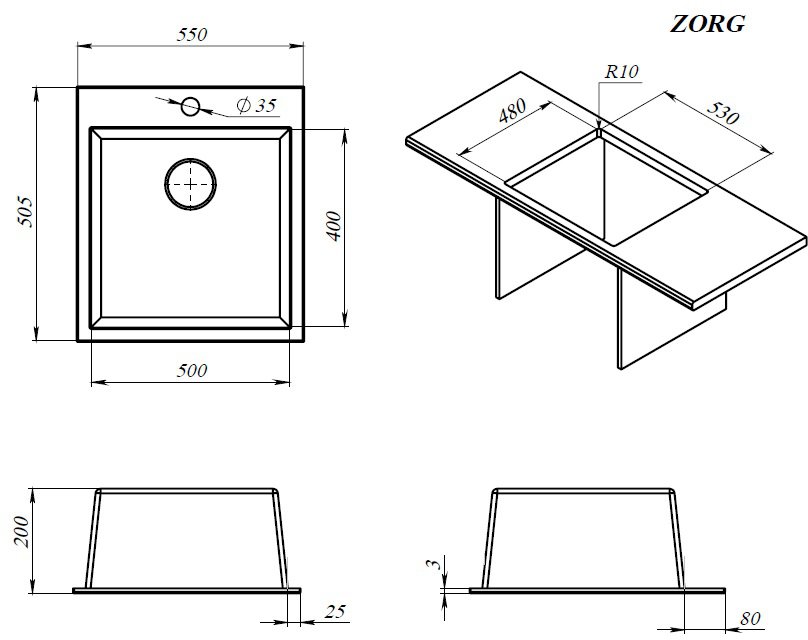 мойка кухонная zorg zrn 5055 premium pvd gold золото