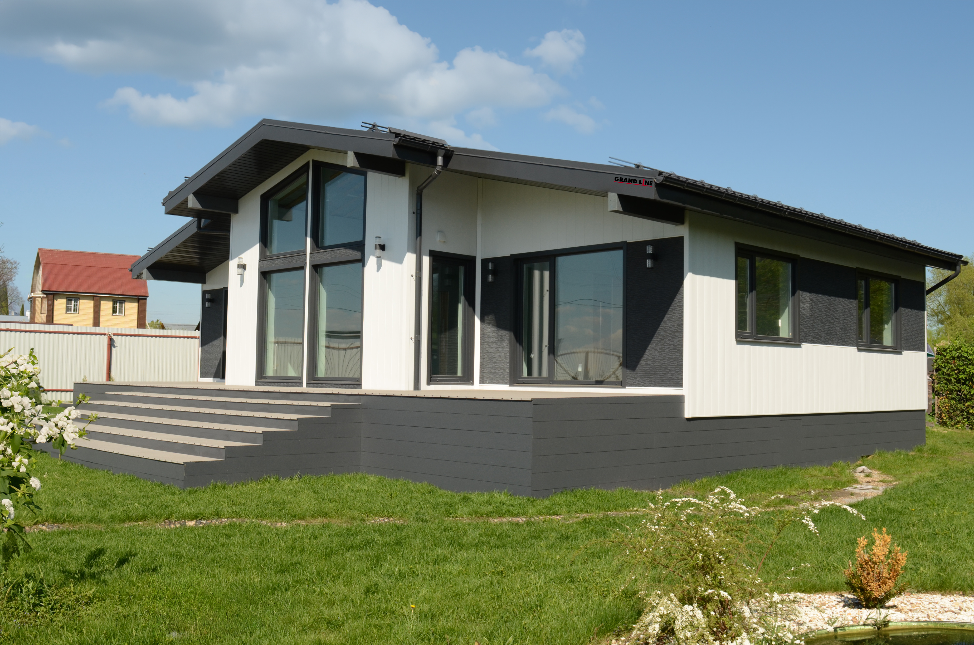 Оригинальность достигается за счет вертикального крепления панелей. Сочетание сайдинга Вертикаль с горизонтальным сайдингом может стать интересным дизайнерским решением.