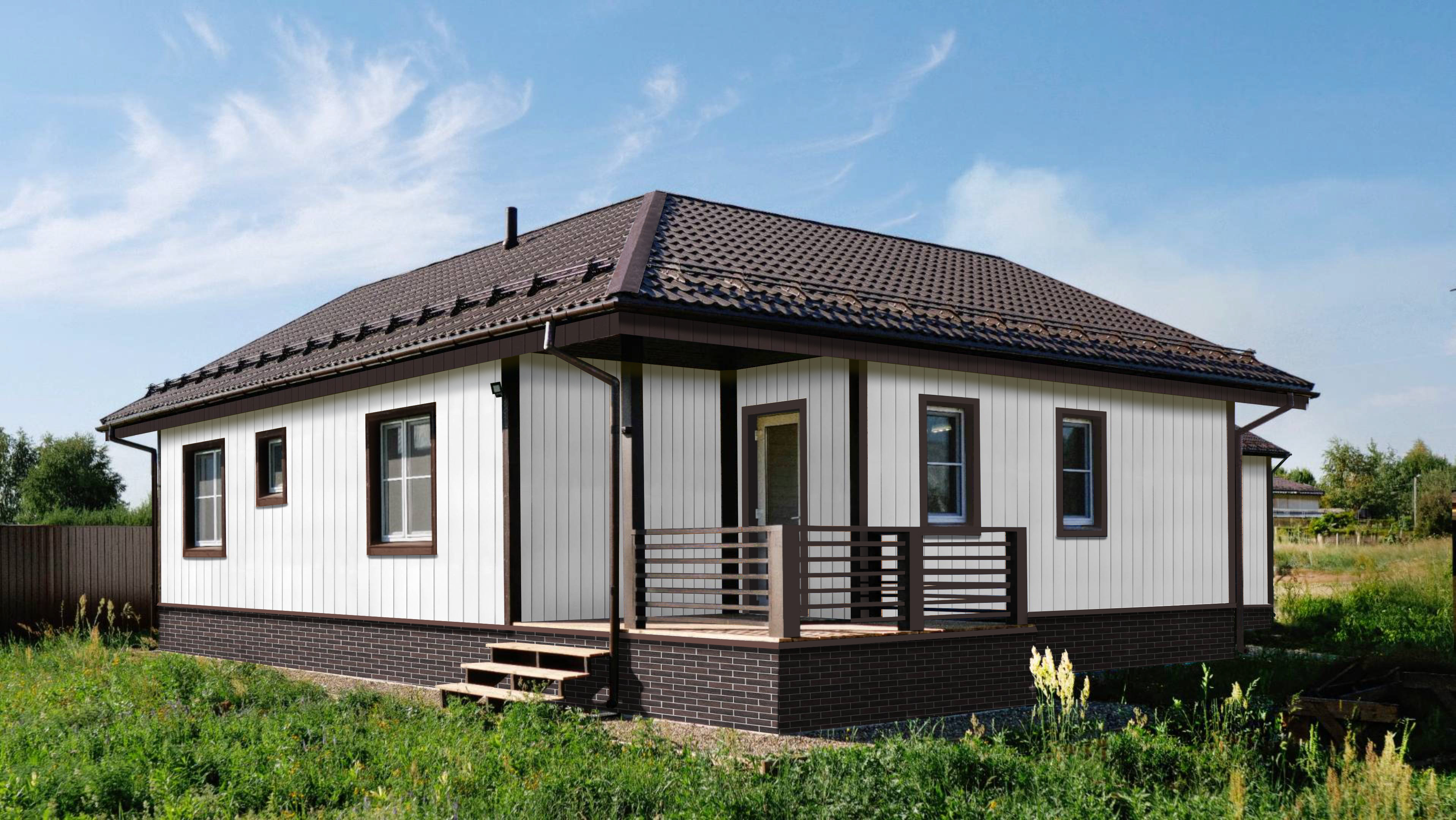 в отличие от облицовки фасада деревом, металлический сайдинг Вертикаль прост в монтаже и не требует дополнительного послемонтажного ухода