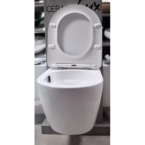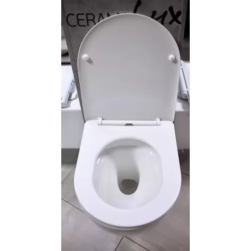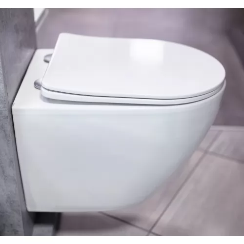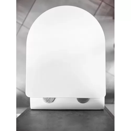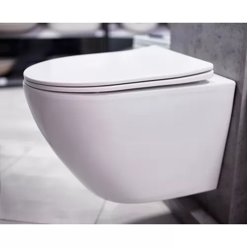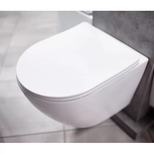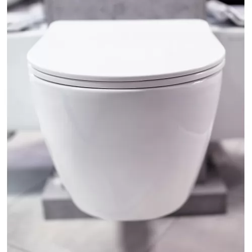 Подвесной унитаз Gid Tr2122Tf с сиденьем Soft Close — современная безободковая модель с овальной чашей белого цвета с бесшумным смывом Tornado, обеспечивающим не только тщательное очищение внутренней поверхности чаши, но и экономию расхода воды. Унитаз изготовлен из высококачественной керамики, что обеспечивает безупречный внешний вид на длительный срок эксплуатации. Модель укомплектована сиденьем из прочного дюропласта с функцией Soft Close для бесшумного опускания. Инсталляция для установки подвесного унитаза приобретается дополнительно.