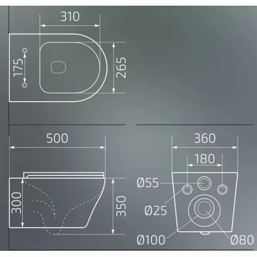 Унитаз Gid Tr2130TFB безободковый, белый глянец (подвесной)