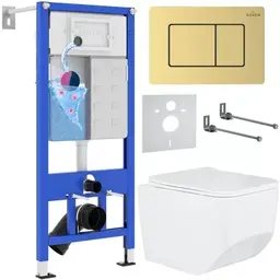 Комплект инсталляция Roxen StounFix Dual Fresh 6 в 1 968466 с унитазом Boro 530145-01 и клавишей смыва Steel 420280GB брашированное золото
