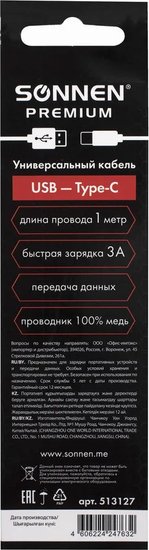 Premium USB Type-A - USB Type-C 513127 (1 м, серый)