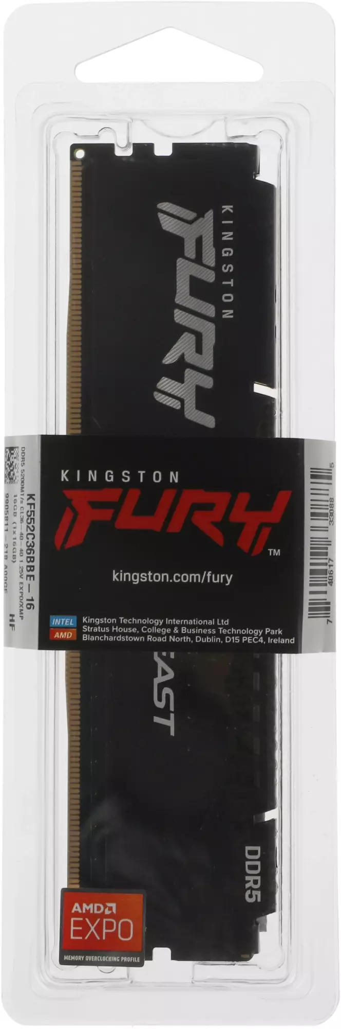Оперативная память Kingston Fury Beast Expo DDR5 - 16GB, 5200 МГц, DIMM, CL36, RTL (kf552c36bbe-16)