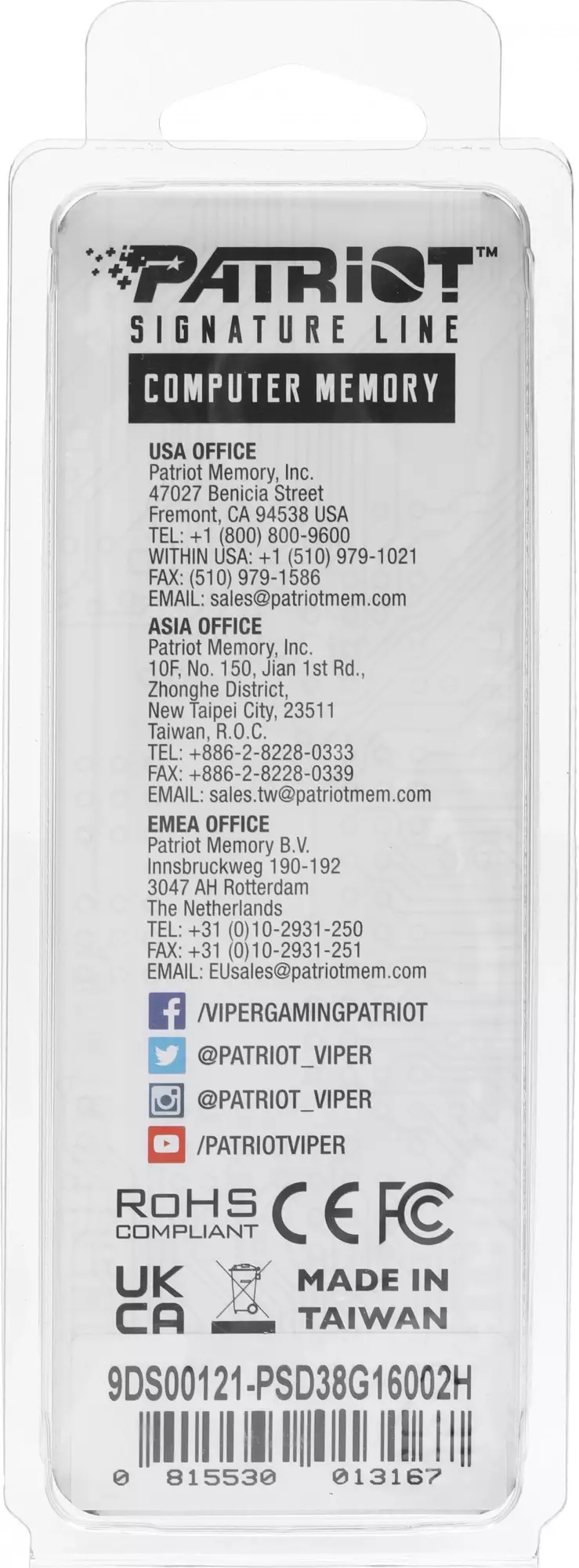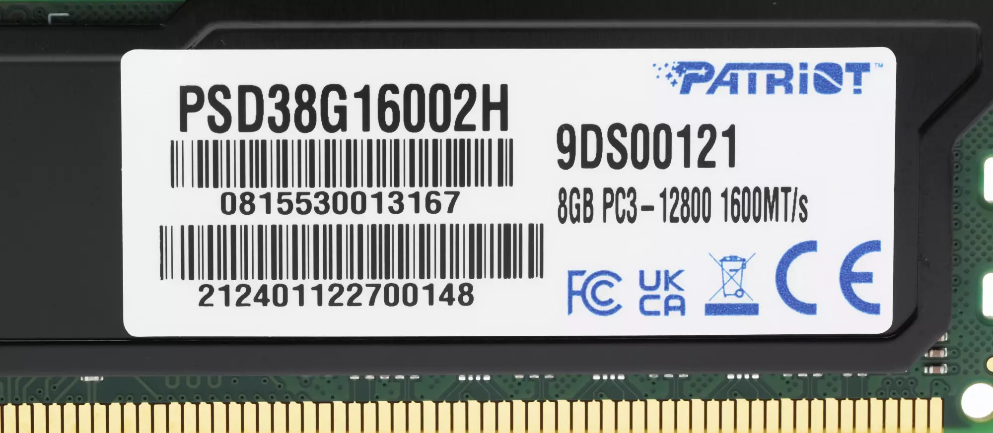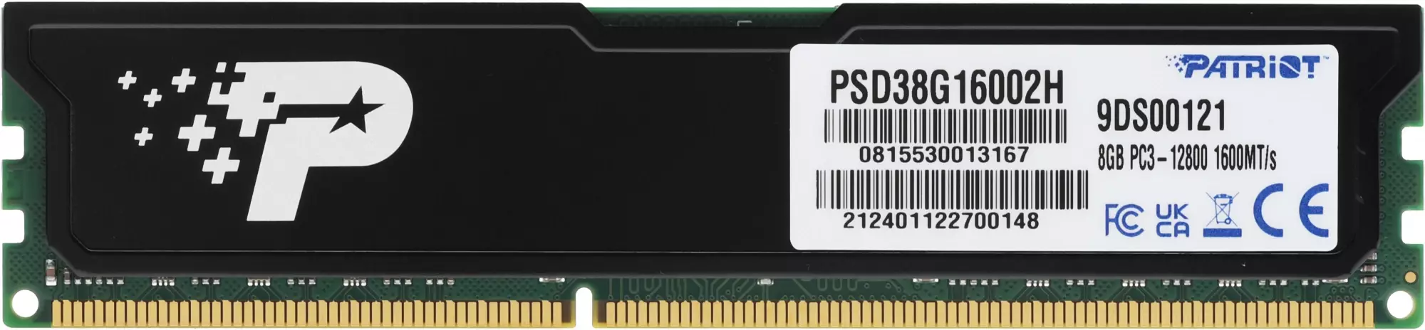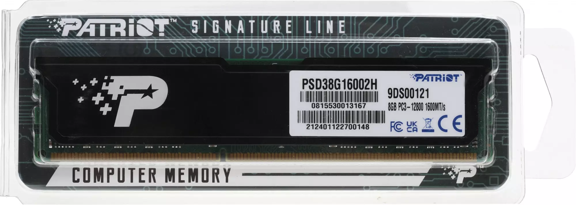 Оперативная память Patriot DDR3 - 8GB, 1600 МГц, DIMM, CL11, RTL (psd38g16002h)