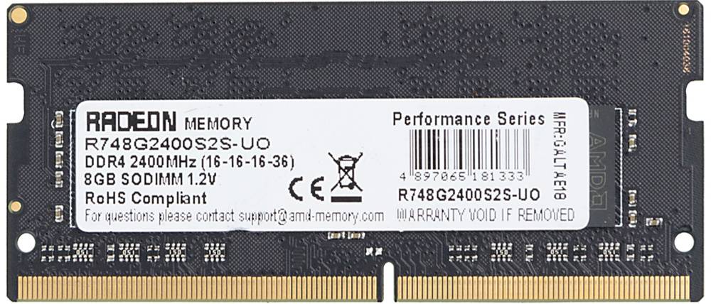Оперативная память AMD Radeon R7 Performance Series DDR4 - 8Gb, 2400 МГц, SO-DIMM, CL16 (r748g2400s2s-uo)