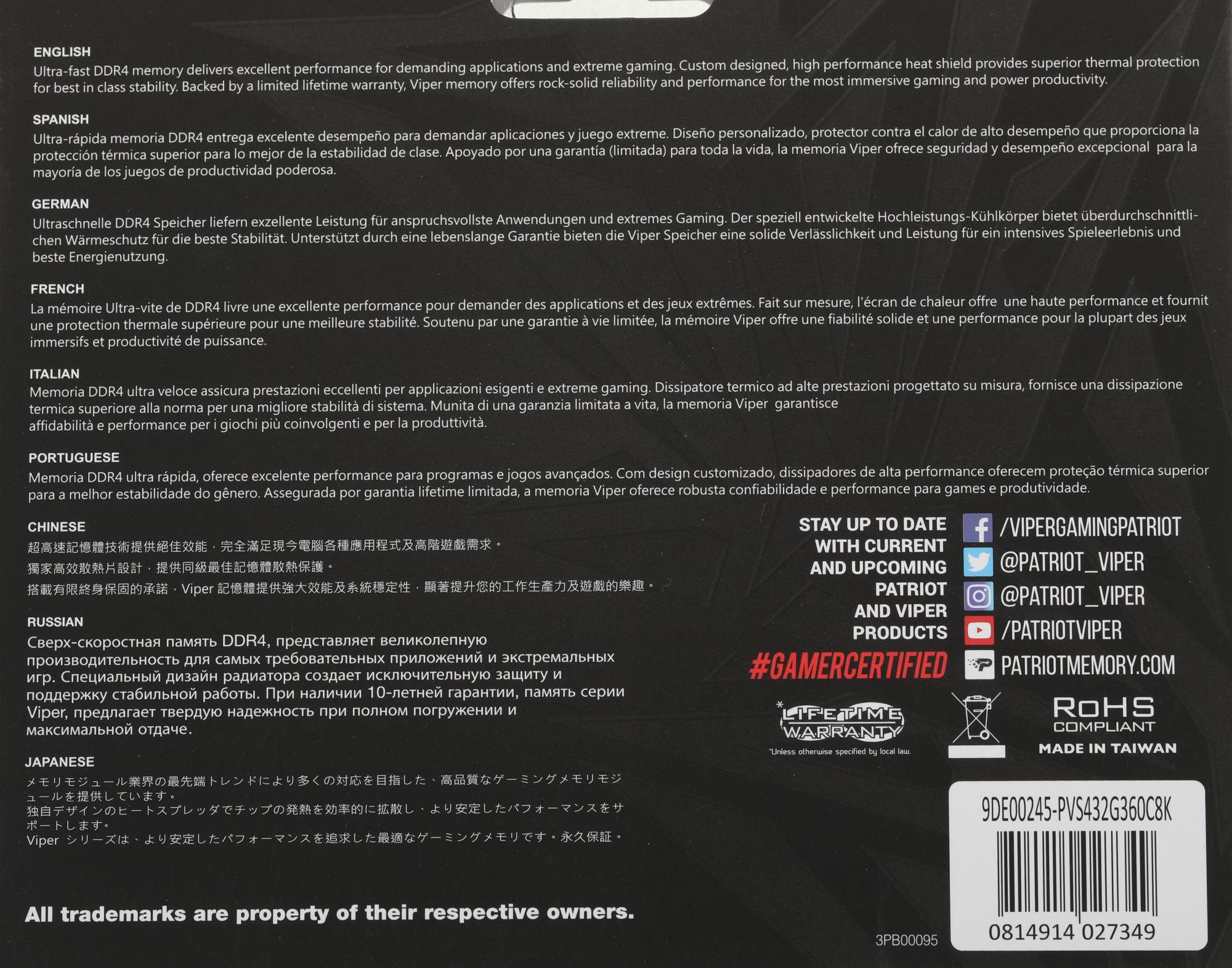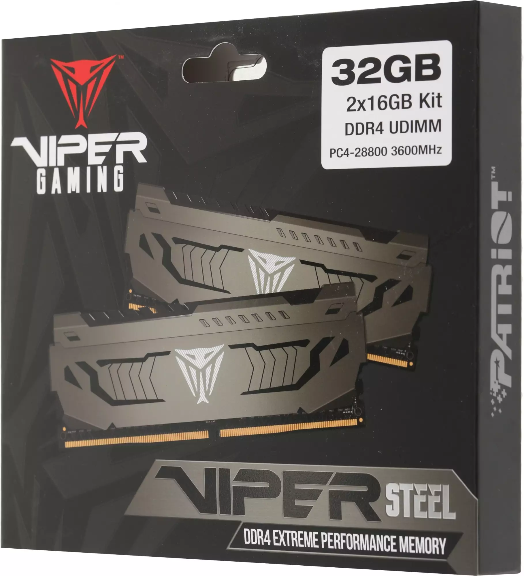 Оперативная память Patriot Viper Steel DDR4 - 2x 16Gb, 3600 МГц, DIMM, CL18 (pvs432g360c8k)
