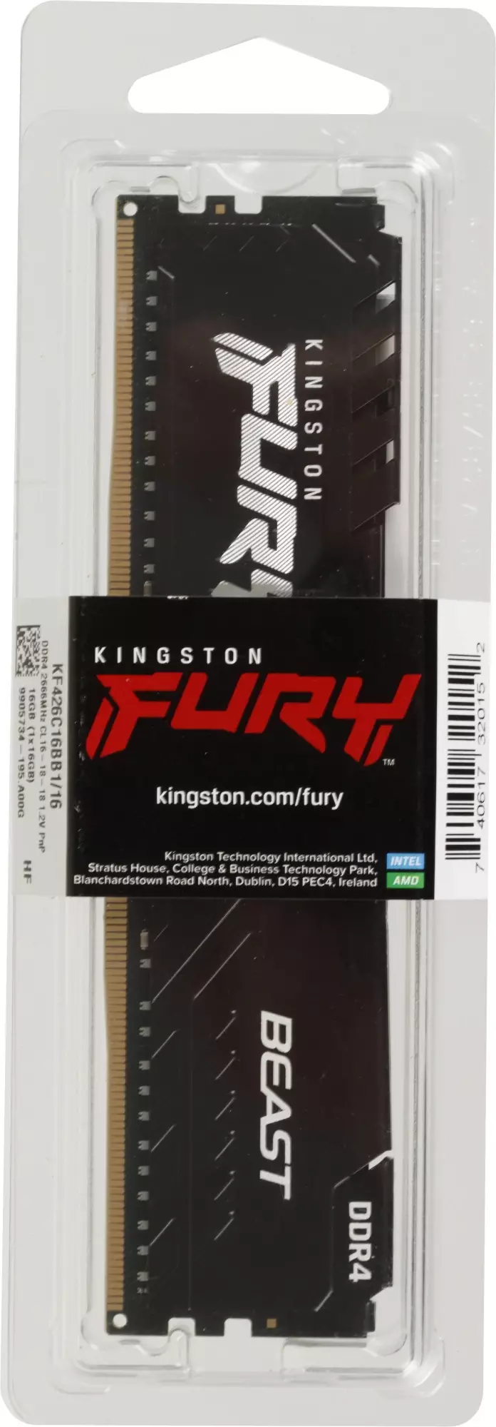 Оперативная память Kingston Fury Beast Black DDR4 - 16GB, 2666 МГц, DIMM, CL16, RTL (kf426c16bb1/16)