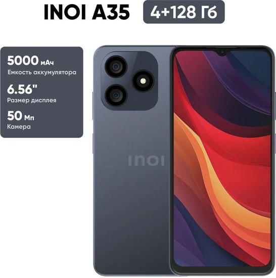 ✅ Ваш цифровой мирКаждая деталь — в идеальной чёткости.Погрузитесь в универсальный мир мобильной фотографии и мультимедиа.✅ Универсальный фотоопытОсновная камера 50 МП с поддержкой ИИ и дополнительным монохромным объективом обеспечивают выразительные снимки с высокой детализацией и точной цветопередачей.✅ Максимум впечатлений от использования6,56-дюймовый дисплей с каплевидным вырезом (V-Notch) подарит визуальное наслаждение при просмотре контента и комфорт при повседневном использовании.✅ Автономность на весь деньАккумулятор ёмкостью 5000 мАч позволит забыть о подзарядке. Устройство поддерживает длительное использование без частых подзарядок, оставаясь идеальным решением как для повседневных задач, так и для активных пользователей.✅ Двойная камера для крутых фотоAI-камера делает снимки более чёткими и насыщенными, а монохромный объектив расширяет творческие возможности.✅ Яркий, плавный, отзывчивый дисплейHD+ IPS экран с диагональю 6,56 дюйма и частотой обновления 90 Гц обеспечивает улучшенную чёткость изображения, плавность прокрутки и комфорт при играх или просмотре видео.✅ Разблокировка одним касаниемФиолетовая кнопка питания со встроенным сканером отпечатков позволяет мгновенно получить доступ к смартфону.✅ Производительность и эффективностьПроцессор Unisoc T606 с 8-ядерной архитектурой обеспечивает стабильную работу при низком энергопотреблении — отличное решение для тех, кто ищет надёжную производительность за доступную цену.✅ Максимальная продуктивность с функцией Memory FusionINOI A35 Adventure позволяет расширить объём оперативной памяти до 12 ГБ (виртуально) на базе 4 ГБ. Это обеспечивает плавную работу приложений и многозадачность без задержек.✅ Action Pop! — новый уровень интерфейсаИнновационная функция Action Pop добавляет удобный элемент UI: отображение фоновой активности, уведомлений и быстрых действий в виде стильного овального индикатора. Это позволяет быть в курсе происходящего, не отвлекаясь от основного экрана.✅ Цвета, которые подчёркивают индивидуальностьВыбирайте между элегантным Titanium Black и освежающим Misty Blue — выразите свой стиль.✅ Ваш цифровой мирКаждая деталь — в идеальной чёткости.Погрузитесь в универсальный мир мобильной фотографии и мультимедиа.✅ Универсальный фотоопытОсновная камера 50 МП с поддержкой ИИ и дополнительным монохромным объективом обеспечивают выразительные снимки с высокой детализацией и точной цветопередачей.✅ Максимум впечатлений от использования6,56-дюймовый дисплей с каплевидным вырезом (V-Notch) подарит визуальное наслаждение при просмотре контента и комфорт при повседневном использовании.✅ Автономность на весь деньАккумулятор ёмкостью 5000 мАч позволит забыть о подзарядке. Устройство поддерживает длительное использование без частых подзарядок, оставаясь идеальным решением как для повседневных задач, так и для активных пользователей.✅ Двойная камера для крутых фотоAI-камера делает снимки более чёткими и насыщенными, а монохромный объектив расширяет творческие возможности.✅ Яркий, плавный, отзывчивый дисплейHD+ IPS экран с диагональю 6,56 дюйма и частотой обновления 90 Гц обеспечивает улучшенную чёткость изображения, плавность прокрутки и комфорт при играх или просмотре видео.✅ Разблокировка одним касаниемФиолетовая кнопка питания со встроенным сканером отпечатков позвол