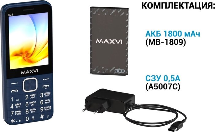 Maxvi K28 – телефон в классическом дизайне с экраном 2,8”, двумя SIM-картами, удобной клавиатурой, разъёмом Type-C и ярким фонариком. Аккумулятор ёмкостью 1800 mAh обеспечит надёжную связь до 15 часов в режиме непрерывных разговоров. Maxvi K28 незаменим для комфортного и продолжительного общения!Maxvi K28 – телефон в классическом дизайне с экраном 2,8”, двумя SIM-картами, удобной клавиатурой, разъёмом Type-C и ярким фонариком. Аккумулятор ёмкостью 1800 mAh обеспечит надёжную связь до 15 часов в режиме непрерывных разговоров. Maxvi K28 незаменим для комфортного и продолжительного общения!