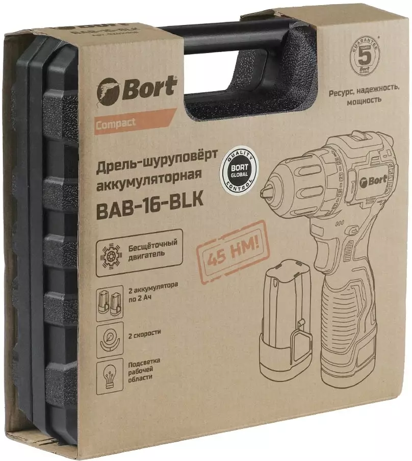 Дрель-шуруповерт Bort BAB-16-BLK (93414868)