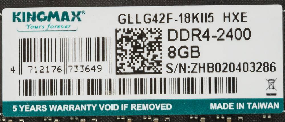Оперативная память Kingmax DDR4 - 8GB, 2400 МГц, DIMM, CL16, RTL (km-ld4-2400-8gs)
