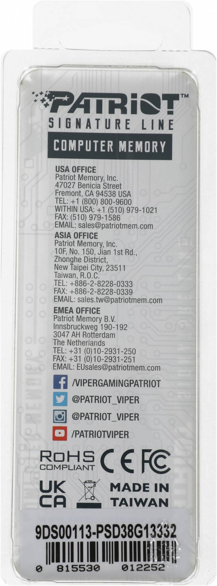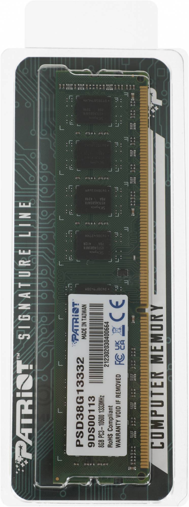 Оперативная память Patriot DDR3 - 8Gb, 1333 МГц, DIMM, CL9 (psd38g13332)