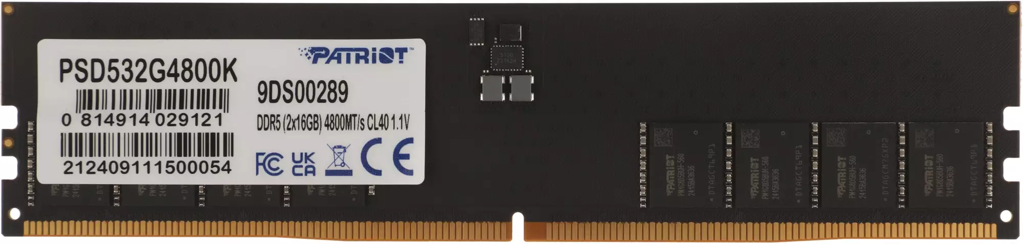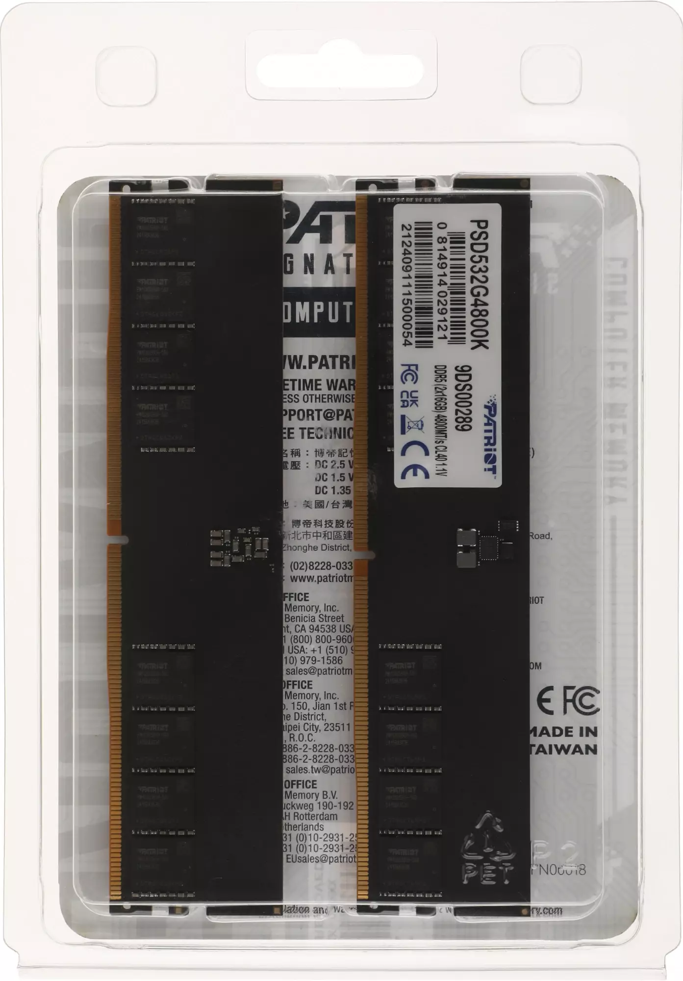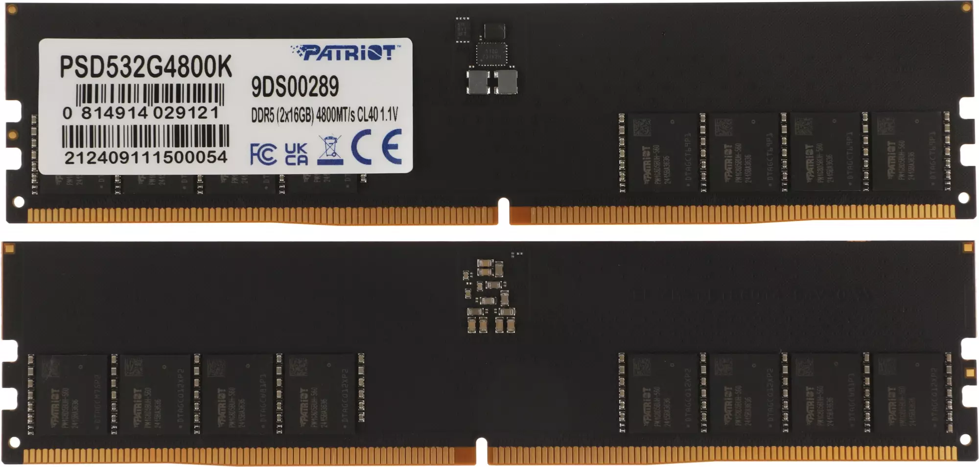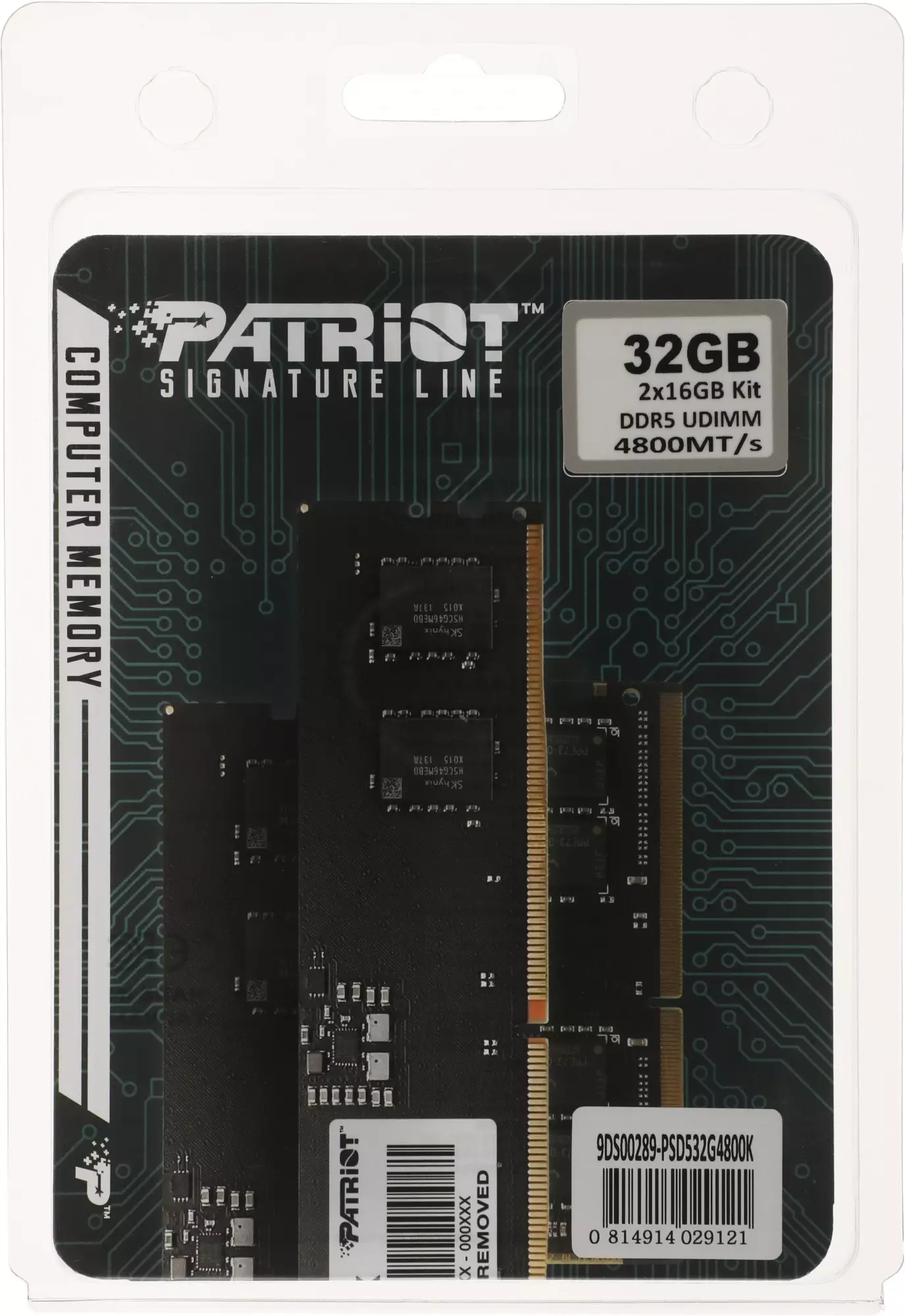 Оперативная память Patriot Signature DDR5 - 2x 16GB, 4800 МГц, DIMM, CL40, RTL (psd532g4800k)