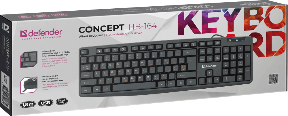 Проводная клавиатура Defender 45164 Concept HB-164 RU,черный,104+FN,1.8м