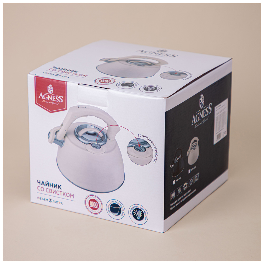 ЧАЙНИК AGNESS СО СВИСТКОМ, СЕРИЯ ТЮДОР, 2,8Л ТЕРМОАККУМУЛИРУЮЩЕЕ ДНО,ИНДУКЦИЯ,ВСТРОЕННЫЙ ТЕРМОМЕТР 908-066