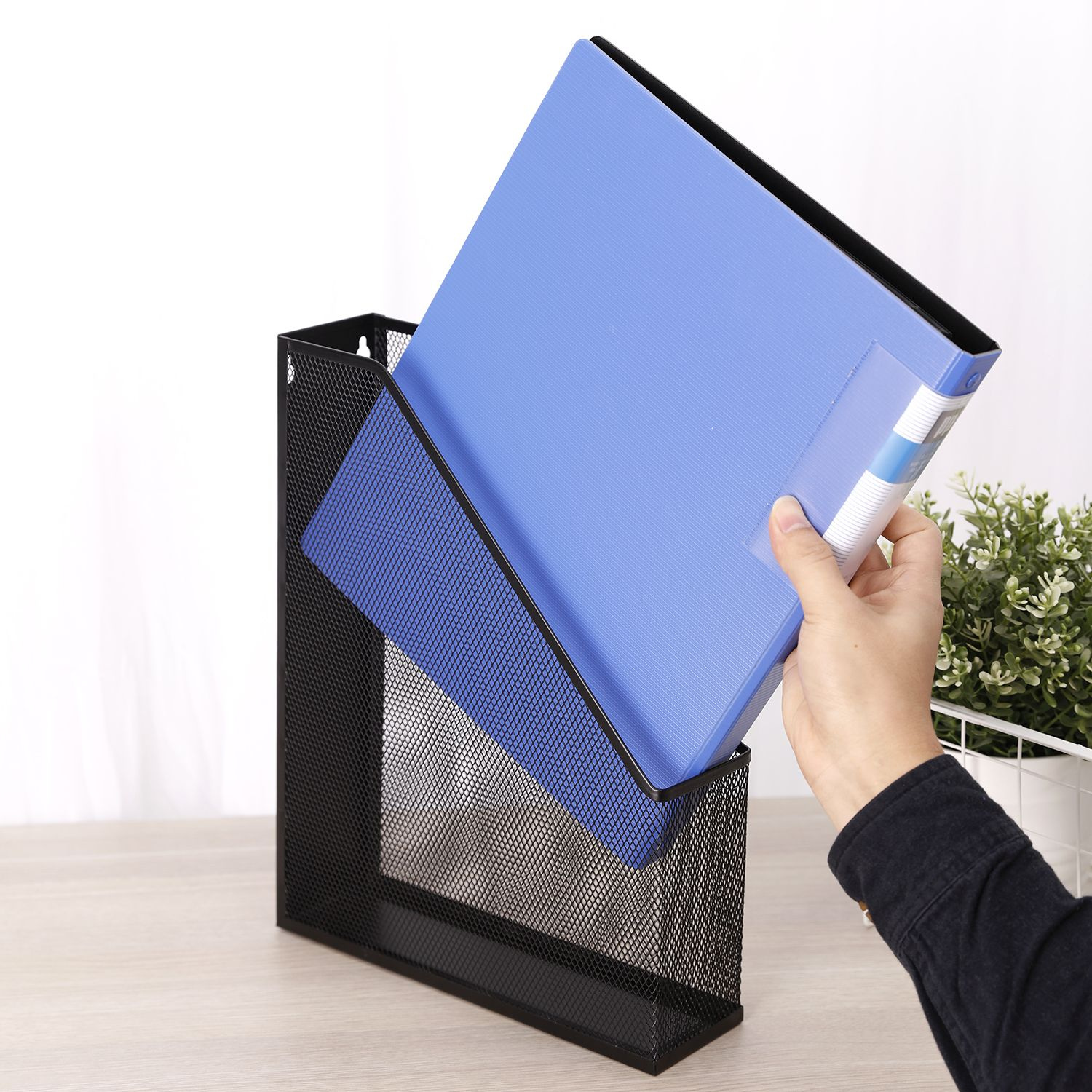 Лоток вертикальный Deli E9186 для бумаг 250х73х316мм черный металл сетка