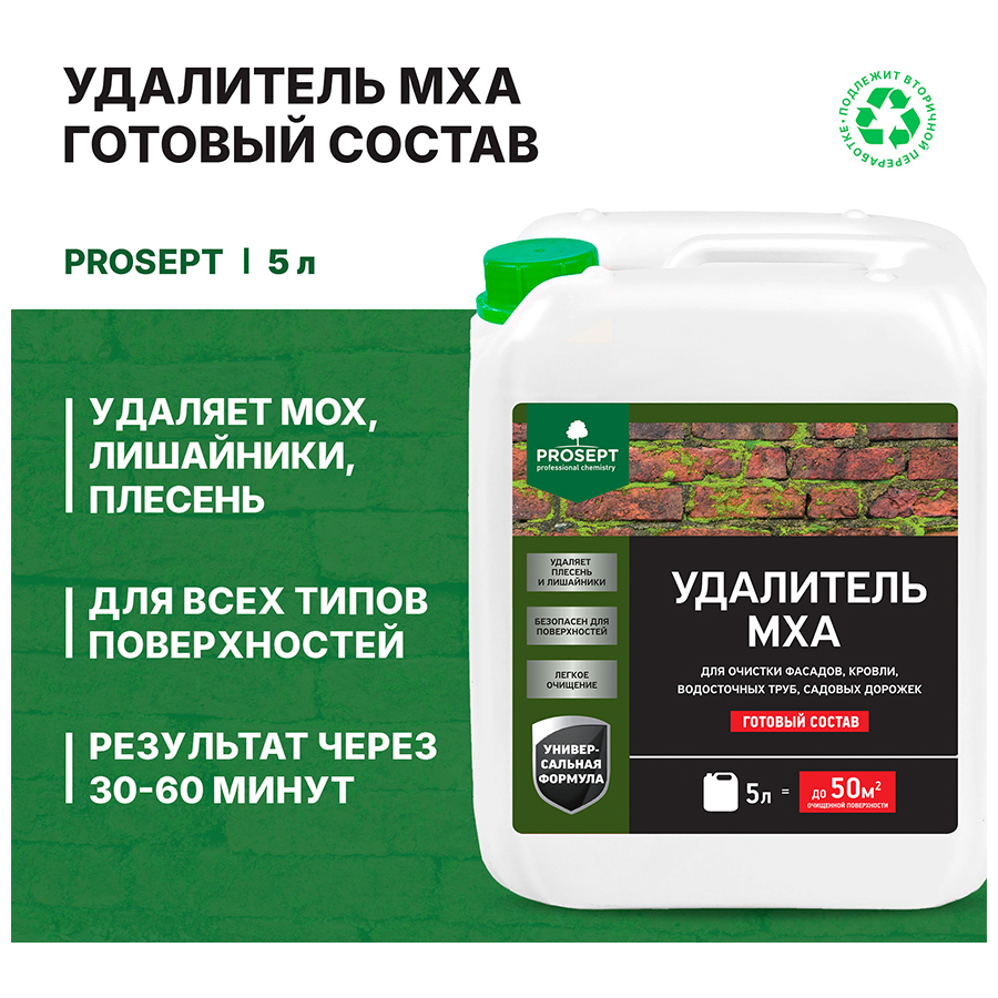 Удалитель мха - средство для удаления мха, лишайников и плесени с фасадов, кровли, водосточных труб, балконов, навесов, террас, садовых дорожек.